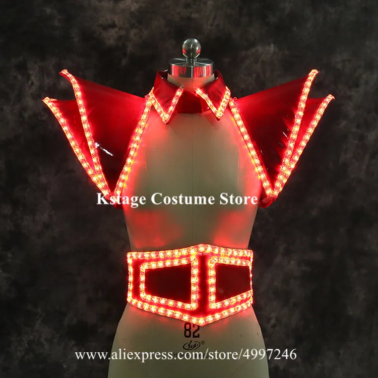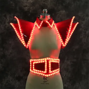 Special Offer طقم ملابس Led للمغني بضوء أحمر RE41 للحفلات بكتف مضيء للدي جي حزام Led ملون للديسكو سترة Led للرجال Discount 11% Today!